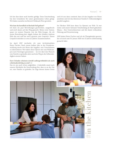Ich bin ihm dann nach hierhin gefolgt. Diese Entscheidung hat den Grundstein f%u00fcr unser gemeinsames Leben gelegt. Wir haben zun%u00e4chst im Bereich Feldmark-West gewohnt. Wie hast du beruflich in Bocholt Fu%u00df gefasst? Ich hatte ein paar Bewerbungen geschrieben, ausgedruckt und mich damit auf den Weg gemacht. Meine erste Station, quasi vor meiner Haust%u00fcr, war die H%u00fcls-Gruppe. Als ich meine Bewerbung dort abgab, bekam der Inhaber Andreas H%u00fcls das mit und bat mich spontan zum Gespr%u00e4ch. Dieses Gespr%u00e4ch m%u00fcndete in etwa 4,5 Jahren Zusammenarbeit. Im April 2017 wechselte ich zum Architekturb%u00fcro Heinz Fischer. Nach einem halben Jahr in der Projektentwicklung macht mir Heinz das Angebot, sein Unternehmen zu %u00fcbernehmen. Wir haben diese Option mit zum Wildcampen nach Norwegen genommen %u2013 wo wir %u00fcber den Wunsch eine Familie zu gr%u00fcnden aber auch den Weg in die Selbstst%u00e4ndigkeit sinniert haben. Eure Urlaube scheinen sowohl au%u00dfergew%u00f6hnlich als auch schicksalstr%u00e4chtig zu sein? ;-)Das ist uns auch schon aufgefallen ;-) Jedenfalls stand nach unserer R%u00fcckkehr die Entscheidung fest, dass es an der Zeit sei, eine Familie zu gr%u00fcnden. Im Zuge dessen hatten Deniz und ich uns dazu comitted, dass ich das Angebot von Heinz annehme und wir das Abenteuer Familie & Selbstst%u00e4ndigkeit parallel angehen. Im Oktober 2018 kam dann Lio Kymani zur Welt. Es war meine und unsere bewusste Entscheidung als frisch gebackene Mama %u2212 f%u00fcrs Unternehmertum und die damit verbundene F%u00fchrung und Verantwortung. 2019 haben Heinz Fischer und ich als %u00dcbergabejahr genutzt, bis ich mich zum 01. Januar 2020 mit 31 Jahren selbstst%u00e4ndig gemacht habe.#in the kitchenPortrait I 97