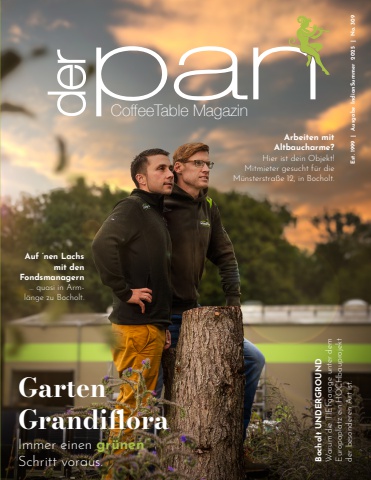 Est. 1999 | Ausgabe IndianSummer 2025 | No. 309Garten Grandifl oraImmer einen gr%u00fcnenSchritt voraus.Auf %u2019nen Lachs mit denFondsmanagern %u2026 quasi in Arml%u00e4nge zu Bocholt.Coff eeTable MagazinBocholt UNDERGROUND Warum die TIEFgarage unter dem Europaplatz ein HOCHbauprojekt der besonderen Art ist.Arbeiten mitAltbaucharme?Hier ist dein Objekt!Mitmieter gesucht f%u00fcr die M%u00fcnsterstra%u00dfe 12, in Bocholt.