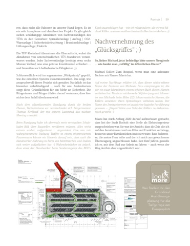 ren, dass nicht alle Faktoren in unserer Hand liegen. Es ist ein sehr komplexes und detailreiches Projekt. Es gibt gleich sieben unabh%u00e4ngige Abnahmen von Sachverst%u00e4ndigen des T%u00dcVs zu den Gewerken: Sprinkleranlage | Aufzug |%u00a0 CO2-Warnanlage |%u00a0 Sicherheitsbeleuchtung |%u00a0 Brandmeldeanlage | L%u00fcftungsanlage | ElektrikDie T%u00dcV Rheinland %u00fcbernimmt die Oberaufsicht, wobei die Abnahmen von unterschiedlichen T%u00dcV-Standorten verantwortet werden. Jeder Sachverst%u00e4ndige ben%u00f6tigt etwa sechs Monate Vorlauf, was eine pr%u00e4zise Koordination erfordert %u2026 und bisweilen auch hellseherische F%u00e4higkeiten ;-). Schlussendlich wird im sogenannten %u201eWirkprinzip%u201c gepr%u00fcft, wie die einzelnen Systeme zusammenwirken. Das zeigt, wie anspruchsvoll dieses Projekt sich gestaltet. Nat%u00fcrlich ist das bisweilen unbefriedigend %u2026 auch f%u00fcr uns. Andersherum sorgt diese Gr%u00fcndlichkeit f%u00fcr ein Mehr an Sicherheit. Die B%u00fcrgerinnen und B%u00fcrger d%u00fcrfen darauf vertrauen, dass hier nichts dem Zufall %u00fcberlassen wird. Nach dem allumfassenden Rundgang durch die beiden Ebenen, Technikr%u00e4ume etc. verabschiedet sich B%u00fcrgermeisterThomas Kerkhoff, der mit seinem Lastenrad das n%u00e4chste Meeting anradelt. Beim Rundgang habe ich abermals mein verstaubtes Schubladen-Bild %u00fcber Baustellen revidieren m%u00fcssen. Alles wirkt extrem sauber, aufger%u00e4umt %u2026 organisiert. Eine von mir wahrgenommene Packung Toffifee in einem improvisierten Pausenraum k%u00f6nnte ein Hinweis darauf sein, dass auch die Handwerker-Nahrung in Form von Mettbr%u00f6tchen und Stullen sich weiter aufgef%u00e4chert hat ;-) Wahrscheinlicher ist jedoch, dass einer der Handwerker beim Sonderangebot des BOH%u2019s Kiosk zugeschlagen hat %u2013 wie ich rekapituliere, als wir mit Michael K%u00f6ller zu einem wohlverdienten Kaffee dort einkehren ;-) Nachvernehmung des %u201eGl%u00fccksgriffes%u201c ;-)So, lieber Michael, jetzt befriedige bitte unsere Neugierde %u2026 wie landet man %u201ezuf%u00e4llig%u201c im %u00f6ffentlichen Dienst? Michael K%u00f6ller: Zum Beispiel, wenn man eine achtsame Tochter mit Namen Mavis hat. Auf meine Nachfrage erfahre ich, dass dieser sch%u00f6n-seltene Name der Fantasie von Michaels Frau entsprungen ist, die vor ein paar Jahrzehnten einem sch%u00f6nen Buch diesen Namen entliehen hat. Mavis ist mittlerweile 36 Jahre jung und Schwester von Michaels Sohn Miles (32). Schon exotische Namen, die K%u00f6llers seinerzeit ihren Spr%u00f6sslingen verliehen haben. Der Name des Zweitgeborenen sei quasi eine logische Fortf%u00fchrung gewesen %u2013 %u201eJ%u00fcrgen%u201c h%u00e4tte aus Sicht der K%u00f6llers zu disharmonisch gewirkt ;-) Mavis hat mich Anfang 2020 darauf aufmerksam gemacht, dass bei der Stadt Bocholt eine Stelle als Elektroingenieur ausgeschrieben war. Sie war der Ansicht, dass die Zeit, die ich auf den Autobahnen rund um K%u00f6ln und Frankfurt verbringe, besser in unser Familienleben investiert w%u00e4re. Eine Sichtweise, die meine Frau teilte und der ich mich aus gewachsener %u00dcberzeugung angeschlossen habe. Seit f%u00fcnf Jahren genie%u00dfe ich es, mit dem Rad zur Arbeit zu fahren %u2013 auch wenn der Weg dorthin eher ungew%u00f6hnlich war %u2026Hier findest ihr den Grundriss/Ausf%u00fchrungsplanung f%u00fcr die Tiefgarage am EuropaplatzPortrait I 59